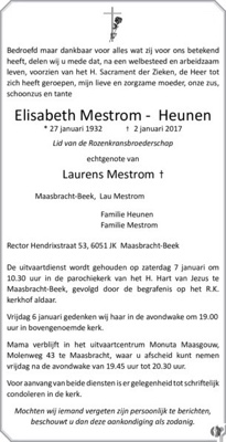 Overlijdensadvertentie Elisabeth Mestrom-Heunen