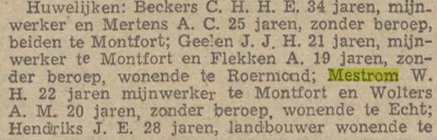 Huwelijksadvertentie Mestrom-Wolters 19421611, Maas- en Roerbode